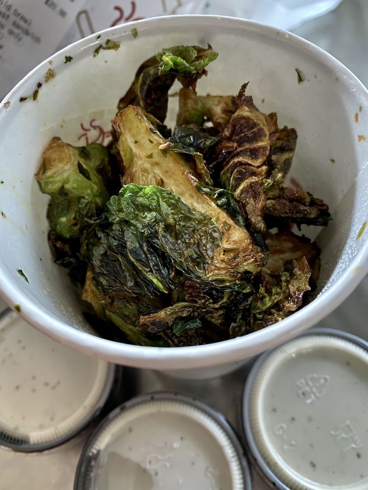Crispy Brussels tossed with garlic, spices, served with ranch.